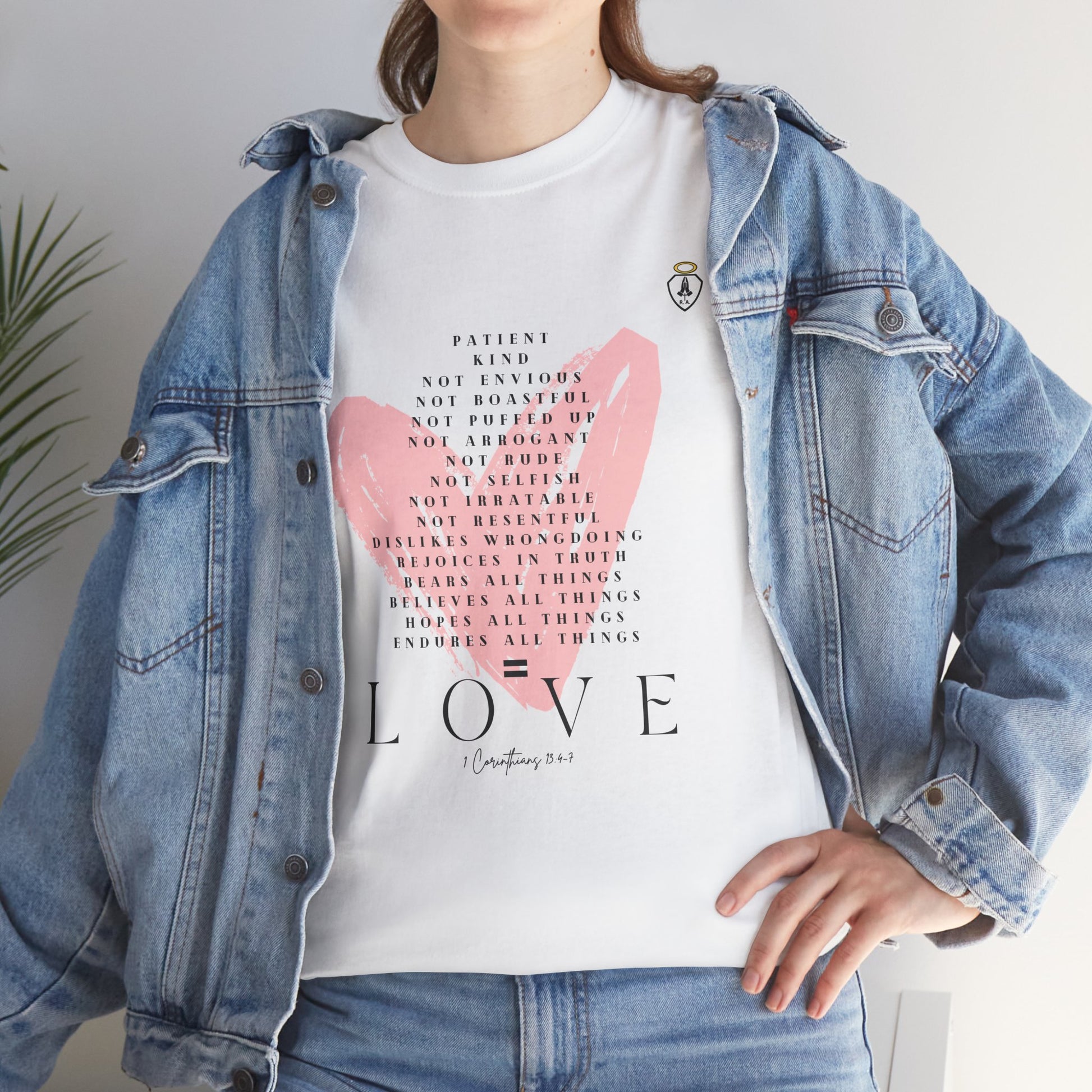 1Corinthians 13 (the Love Chapter ) is a great way to share your Love of God and show who you belong to. Start up a conversation about Jesus or just represent your part in the family of God. This unisex heavy cotton tee is the basic staple of any wardrobe. The specially spun fibers provide a smooth texture against your skin, guaranteeing you comfort. No side seams mean there are no itchy interruptions under the arms. The shoulders have tape for improved durability. .: Made with medium fabric (5.3 oz/yd² (180 g/m²)) consisting of 100% cotton for year-round comfort that is sustainable and highly durable. .: The classic fit of this shirt ensures a comfy, relaxed wear while the crew neckline adds that neat, timeless look that can blend into any occasion, casual or semi-formal. .: The tear-away label means a scratch-free experience with no irritation or discomfort whatsoever. .: Made using 100% US cotton that is ethically grown and harvested. Gildan is also a proud member of the US Cotton Trust Protocol ensuring ethical and sustainable means of production. This Tee is certified by Oeko-Tex for safety and quality assurance.