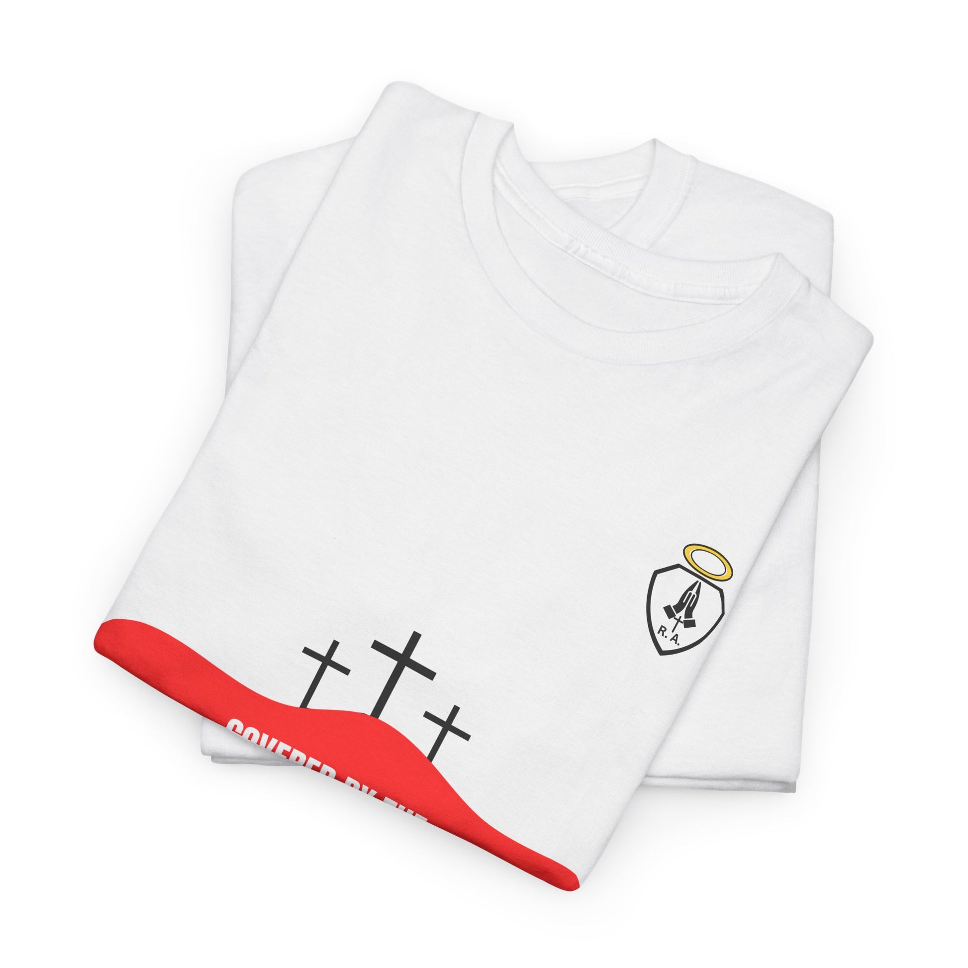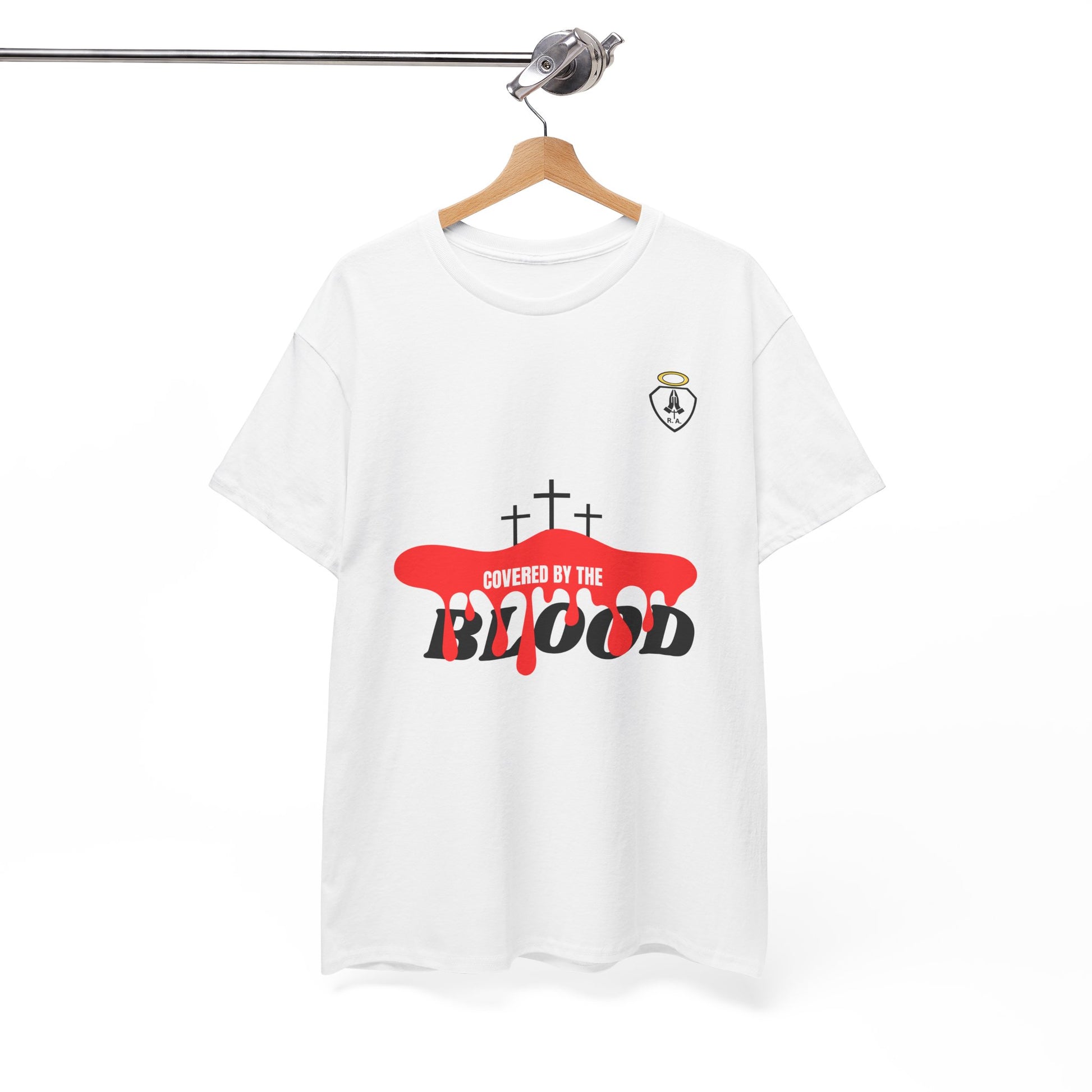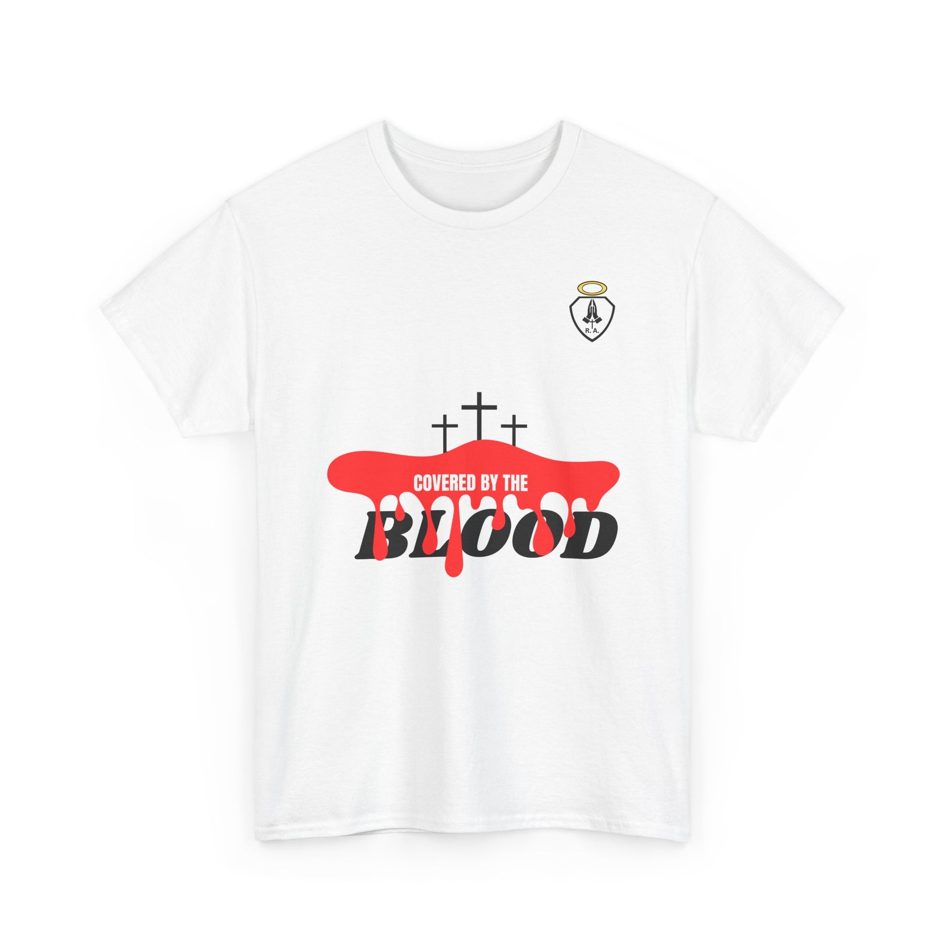 COVERED BY THE BLOOD is a great way to share your Love of God and show who you belong to. Start up a conversation about Jesus or just represent your part in the family of God. This unisex heavy cotton tee is the basic staple of any wardrobe. The specially spun fibers provide a smooth texture against your skin, guaranteeing you comfort. No side seams mean there are no itchy interruptions under the arms. The shoulders have tape for improved durability.