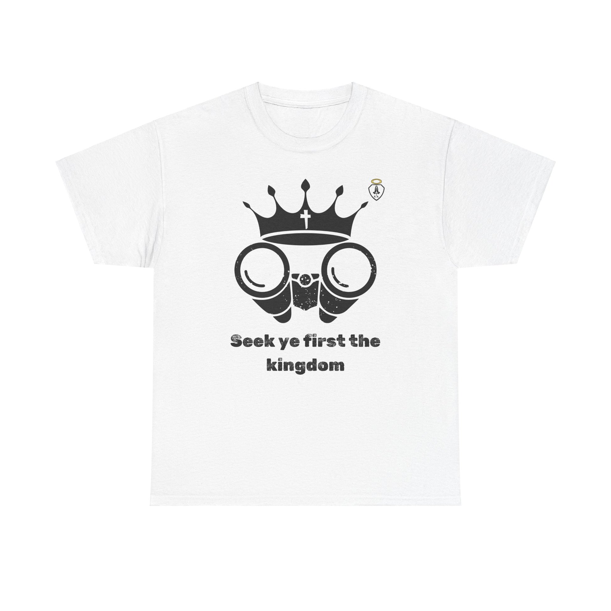 *Seek ye first the Kingdom* is a great way to share your Love of God and show who you belong to. Start up a conversation about Jesus or just represent your part in the family of God. This unisex heavy cotton tee is the basic staple of any wardrobe. The specially spun fibers provide a smooth texture against your skin, guaranteeing you comfort. No side seams mean there are no itchy interruptions under the arms. The shoulders have tape for improved durability. .: Made with medium fabric (5.3 oz/yd² (180 g/m²)) consisting of 100% cotton for year-round comfort that is sustainable and highly durable. .: The classic fit of this shirt ensures a comfy, relaxed wear while the crew neckline adds that neat, timeless look that can blend into any occasion, casual or semi-formal. .: The tear-away label means a scratch-free experience with no irritation or discomfort whatsoever. .: Made using 100% US cotton that is ethically grown and harvested. Gildan is also a proud member of the US Cotton Trust Protocol ensuring ethical and sustainable means of production. This Tee is certified by Oeko-Tex for safety and quality assurance.