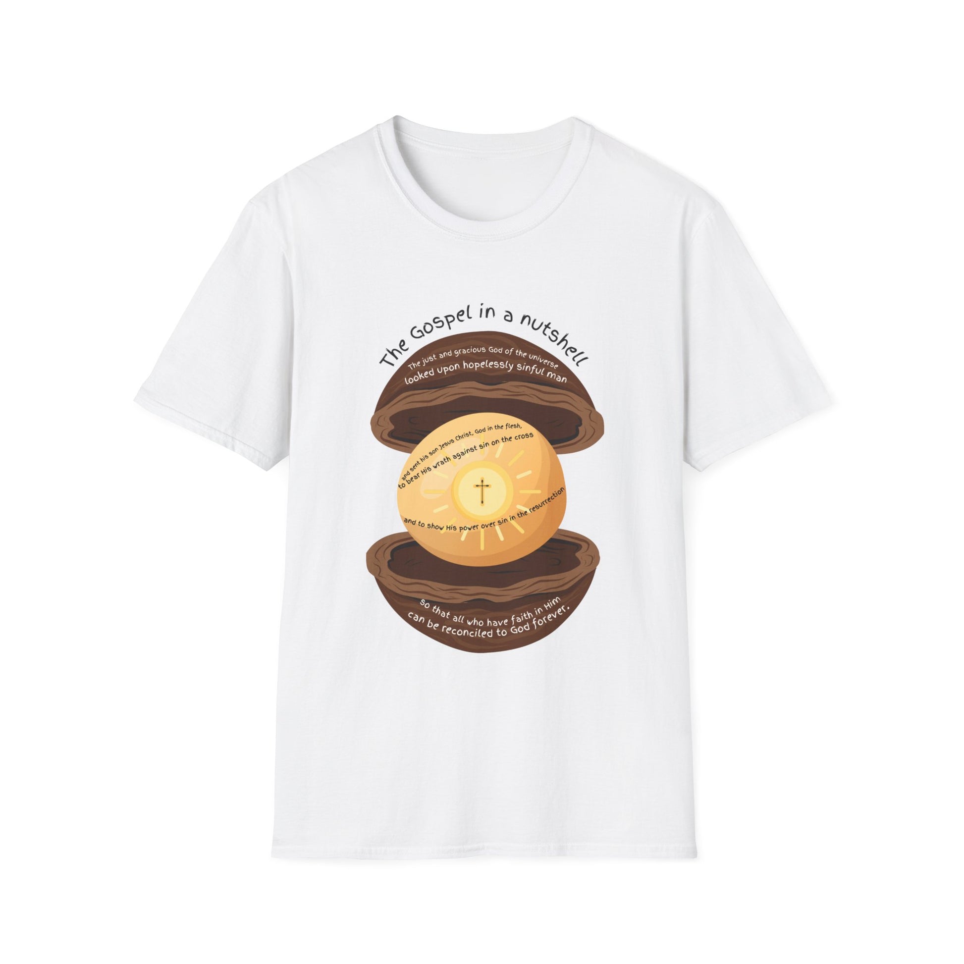 “The Gospel in a nutshell” Unisex Softstyle T-Shirt - The Gospel in a Nutshell, Christian Apparel, Faith-Based Gift, Casual Wear, Spirituality Fashion
